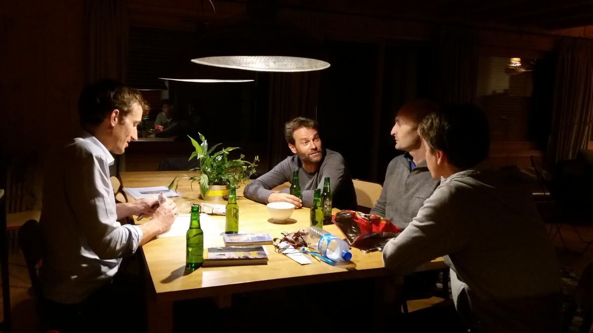 Chips et bière à 1h dans une boîte de Chamonix, sac et piolets sur le dos, 24 heures après notre départ pour la face Nord des Droites avec Stéphan