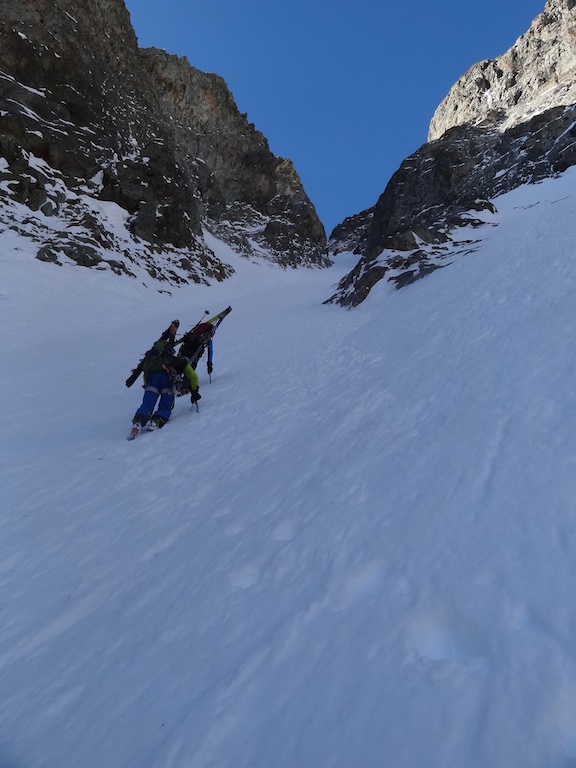 Une journée mémorable avec la remontée du couloir Pélas Verney à la Brèche Victor Chaud : un toboggan de presque 1 000 mètres, très encaissé, avec une ambiance exceptionnelle. Enchaîné avec une descente à ski de son versant sud très plaisante.