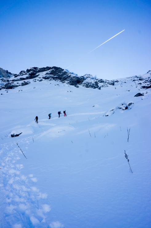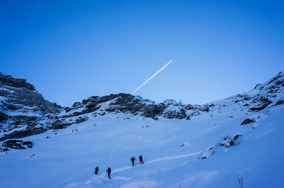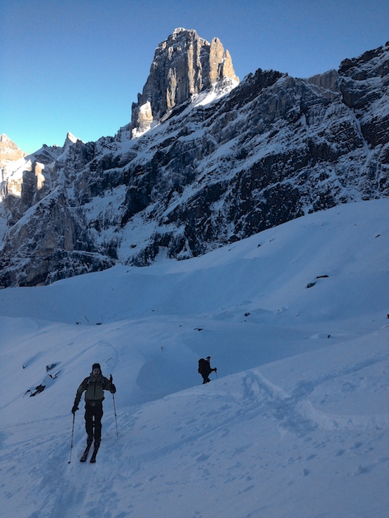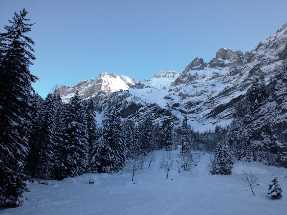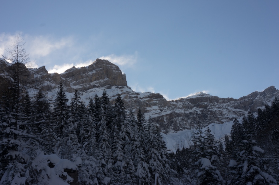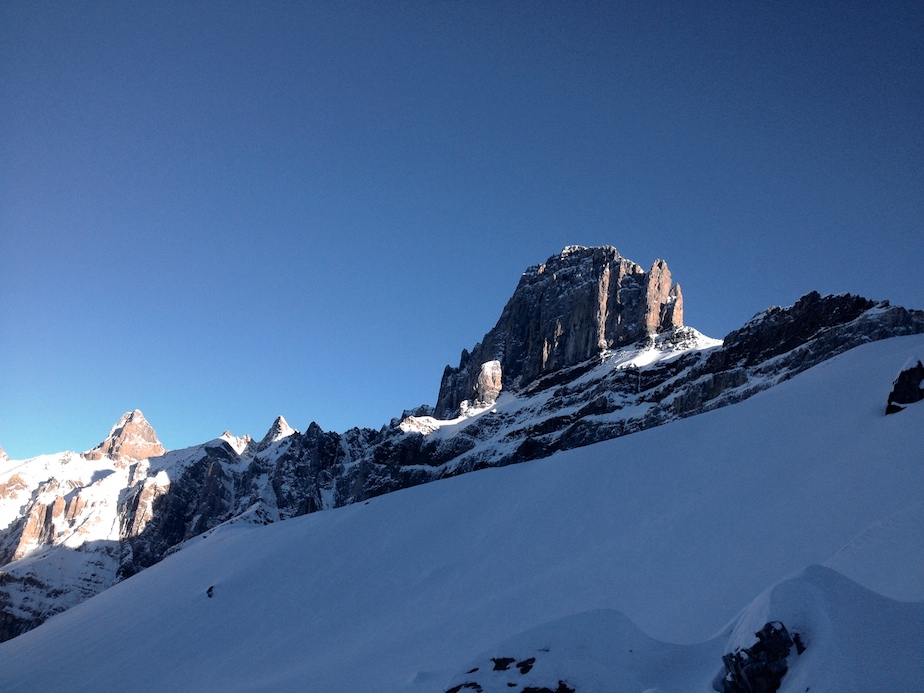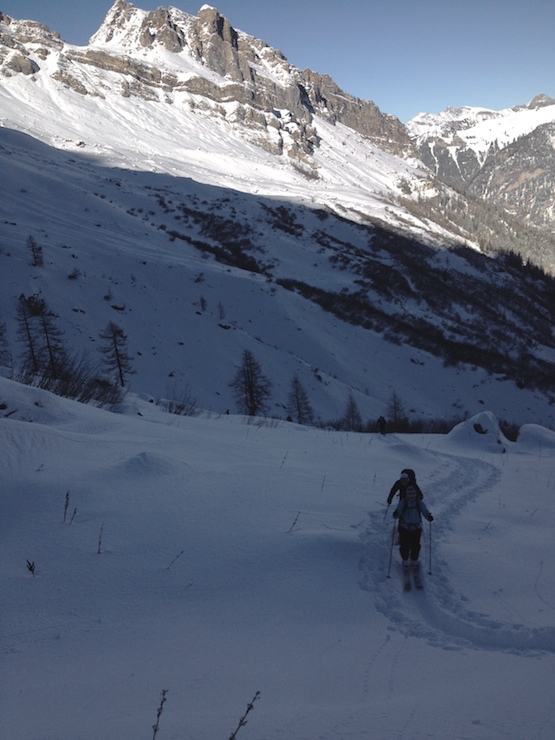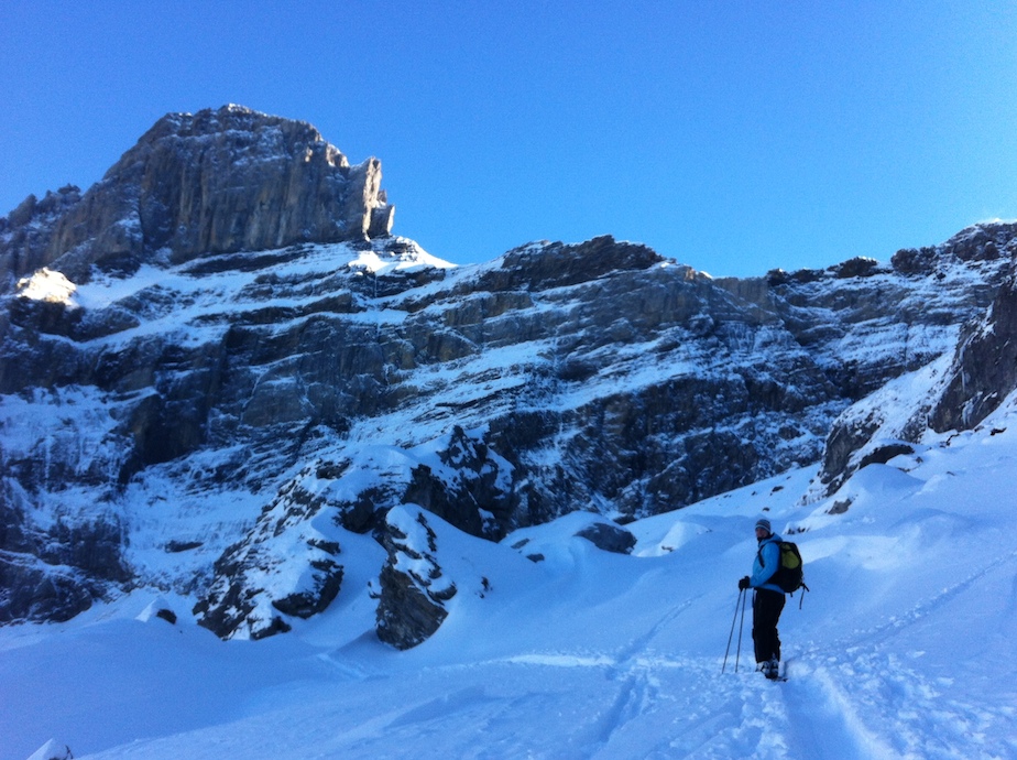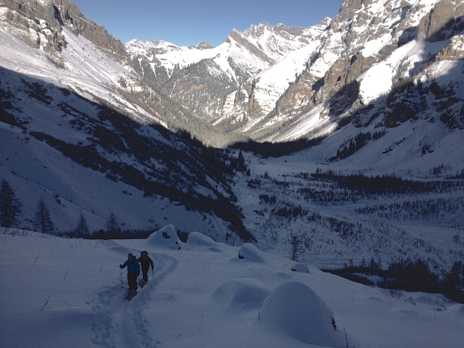 Première sortie de la saison hiver 2013 / 2014, et ce n’était que du bonheur ! Grand beau, pas de vent, un vallon sauvage et charmant derrière la célèbre Dent de Morcles, une belle neige poudreuse sur les pentes supérieures. Seules quelques touchettes sont venues assombrir le tableau mais ce sont les risques du métier…