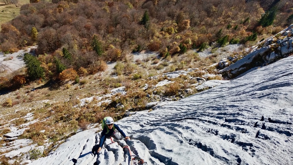 A l’heure de faire le choix d’une destination pour faire une grande voie à la journée le Sappey me vient immanquablement en tête. La falaise offre de nombreuses possiblités de grandes voies de qualité dans un environnement reculé et calme à l’abri de l’agitation de la ville. A force de proposer encore et encore cette destination j’en deviens critique envers moi-même, me jugeant dépourvu de toute imagination… Et pourtant.